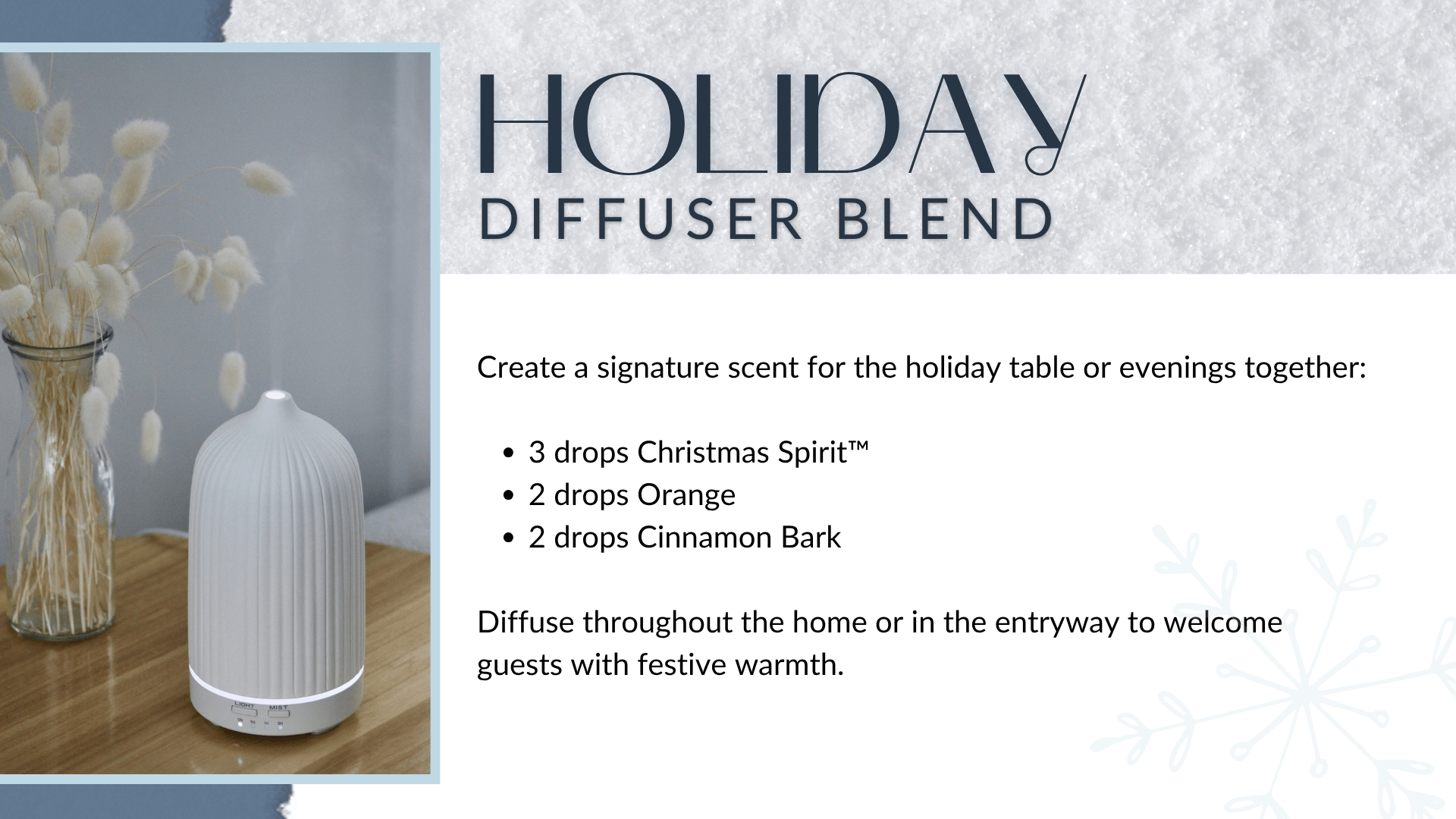 🕯 Create a calming and joyful atmosphere in your home each day during the holiday season using specific essential oil blends.
